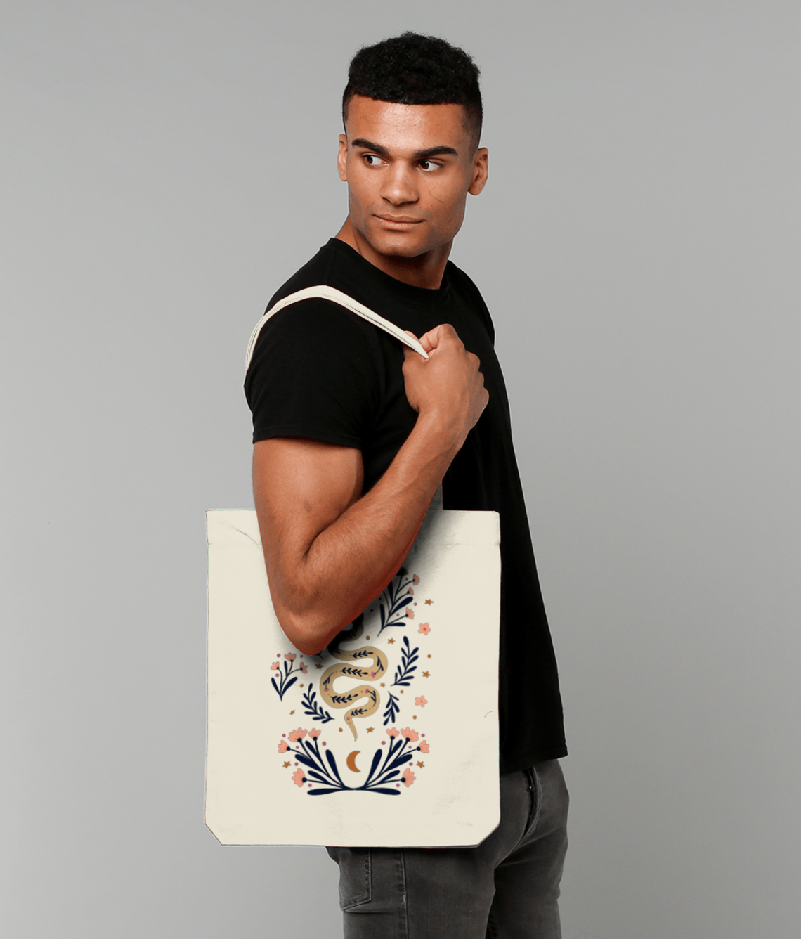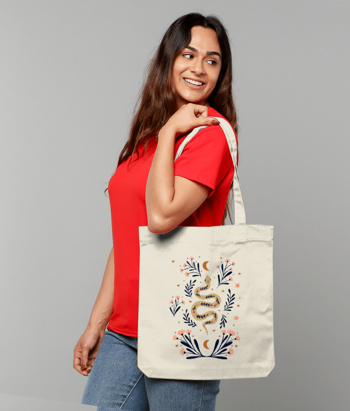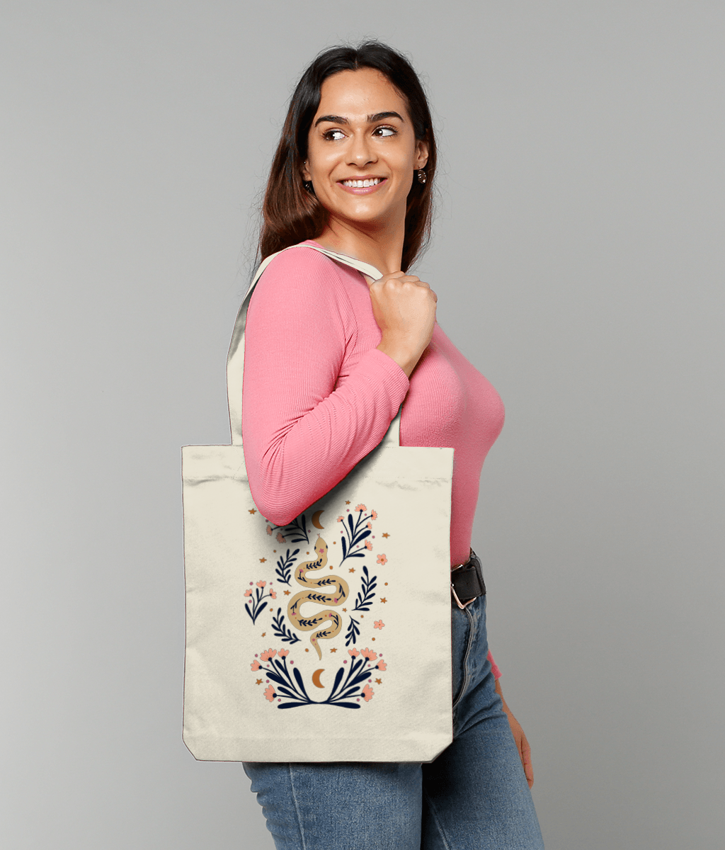 Snake and flowers Sacoșă Țesută De Bumbac Organic | STAU760